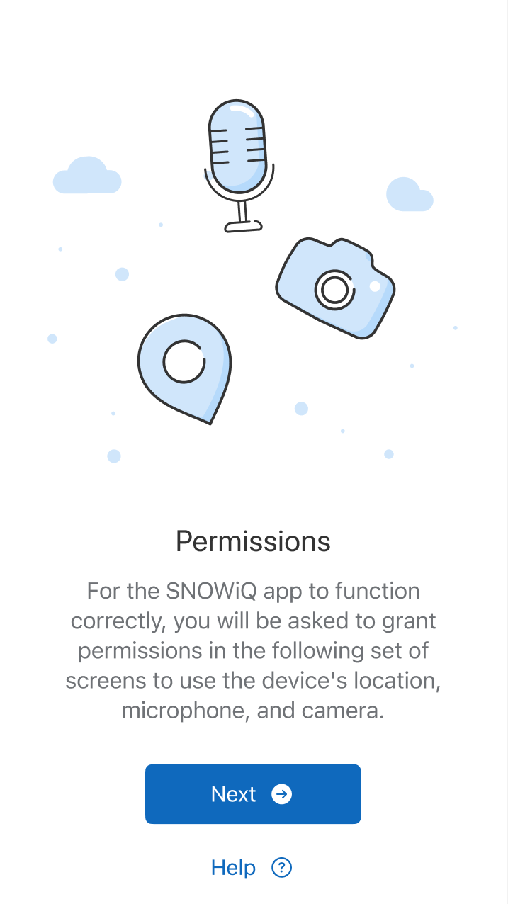 Upon first launch of the app, the user must allow their device to access their device’s location, camera, and microphone. After allowing these permissions, the user can then log into the app.