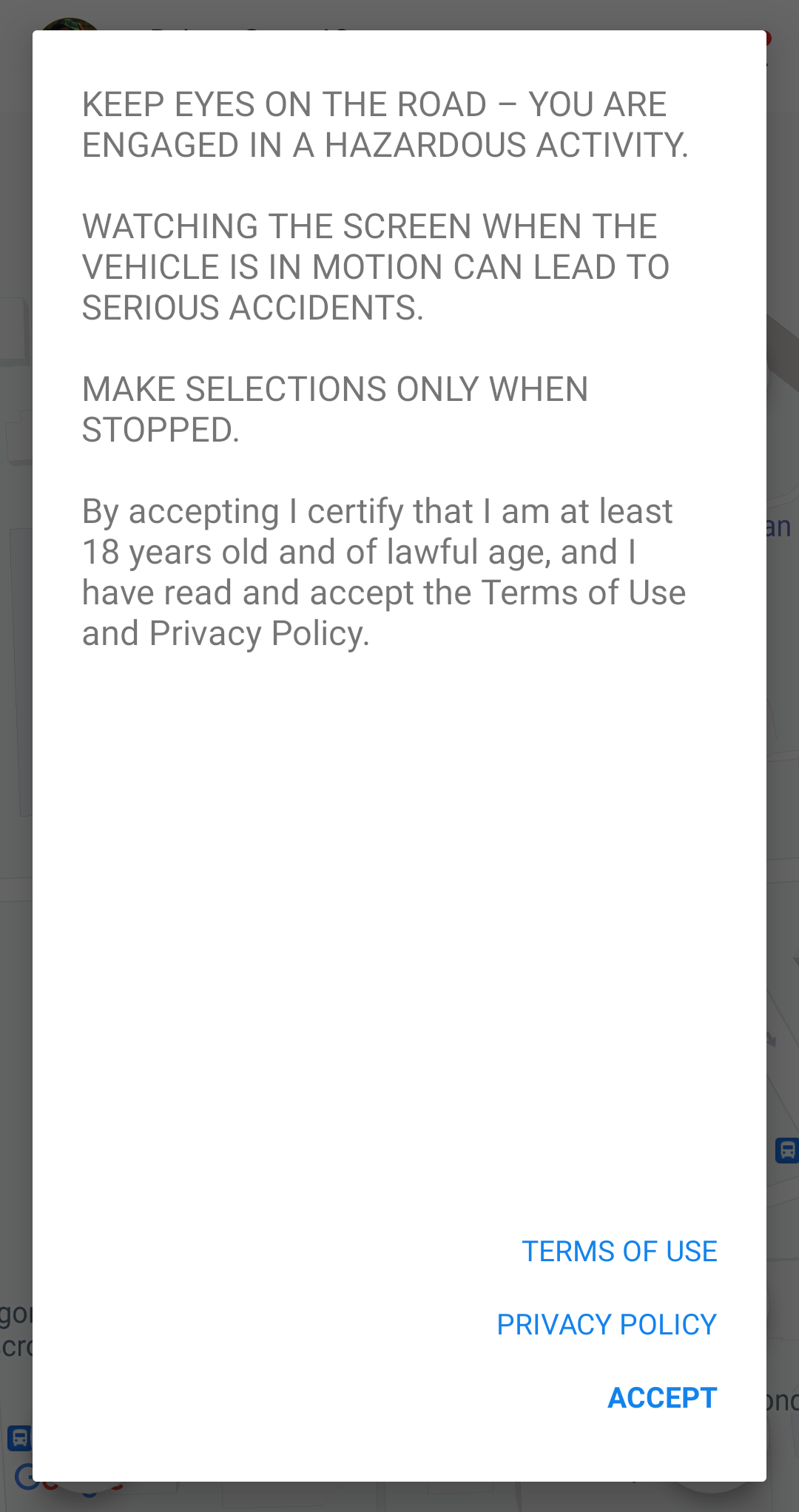 After selecting ACCEPT, the user will have full access to Driver App functionality.