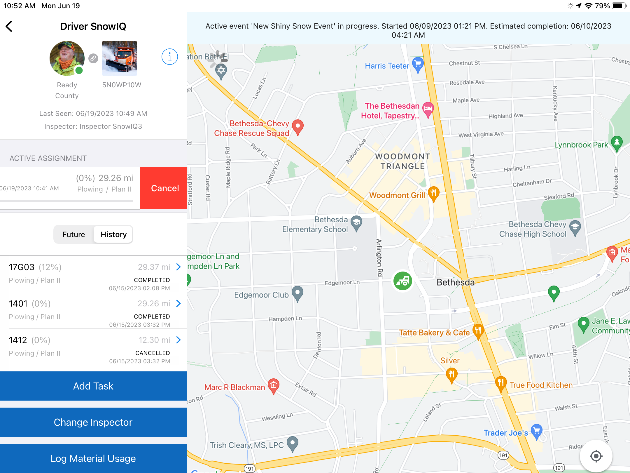 If a Supervisor selects the first option, the system notifies the Driver to continue working on the assignment (i.e. make another pass). If the supervisor selects the second option, the system marks the multi-pass Assignment as Completed and removes it from the respurce’s Active Assignments. Completed assignments can be viewed by selecting the History tab.