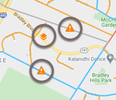- Temporary hazard (orange warning triangle marker): A temporary road hazard such as a fallen tree, downed power line, or traffic accident Note: These hazards will appear on the map for all Supervisors and Drivers that are working in the same service area