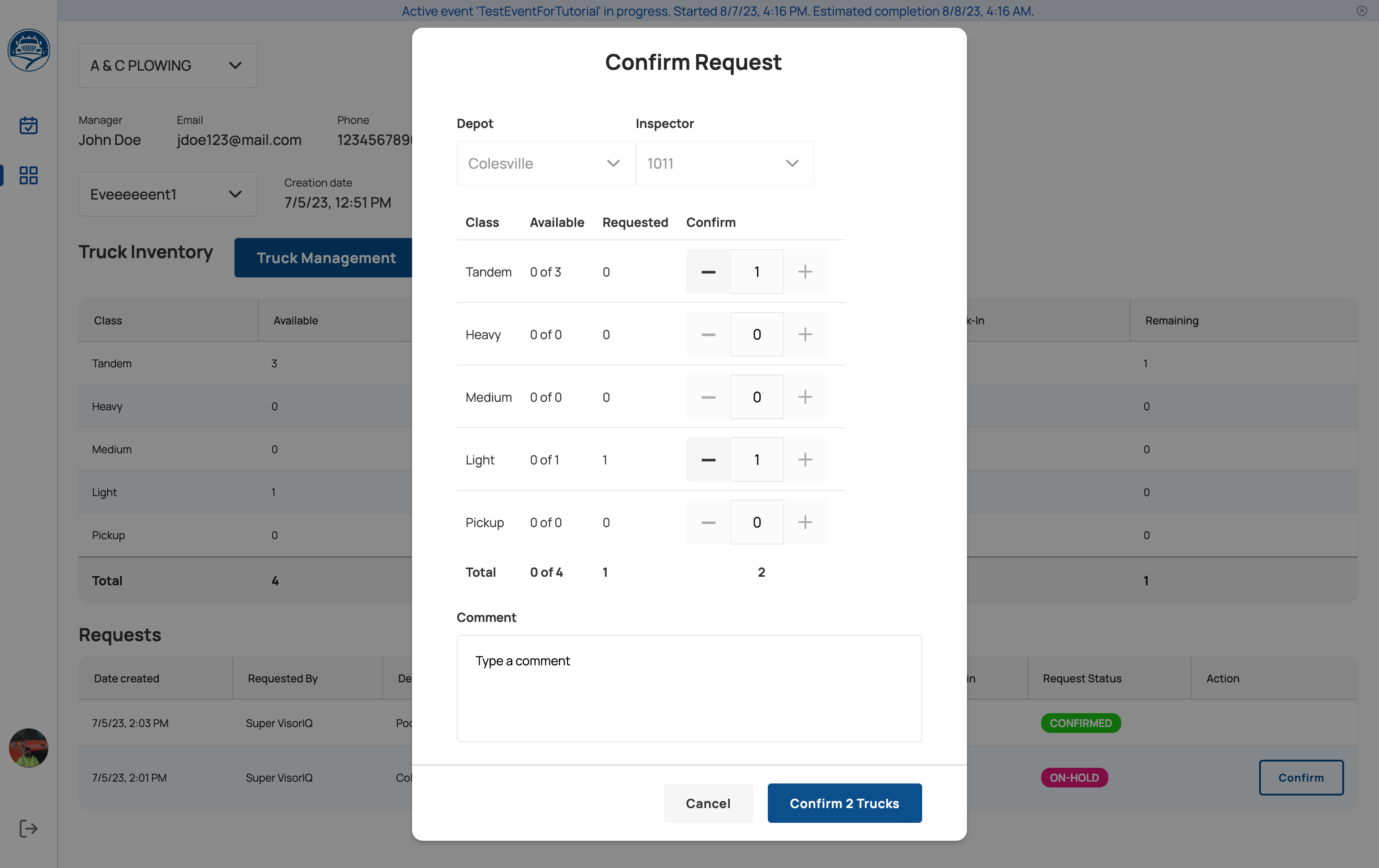 After truck availability is submitted, the Supervisor will see that the company has verified availability.