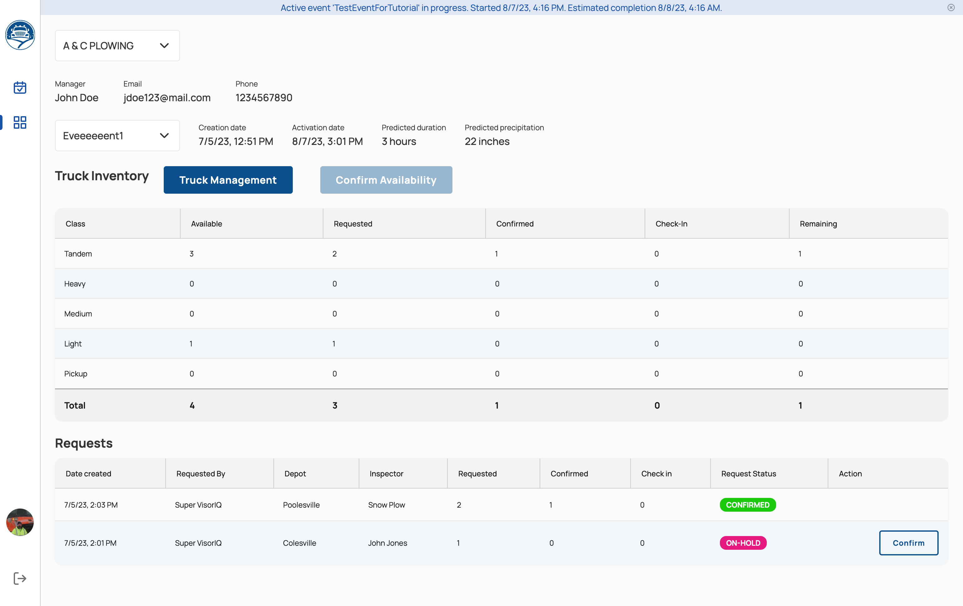 After a Supervisor has added a contractor company to support an upcoming snowstorm event, the Contractor Manger will receive an email notification asking to first update and confirm truck availability.